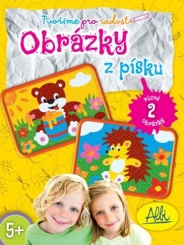 Obsah sady: 2 samolepicí obrázky, sada barevných písků (9 barev), kouzelné třpytky