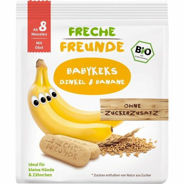 Sušenky - Špalda a banán BIO jsou sušenky v bio kvalitě vhodné pro děti od ukončeného 8.měsíce. Jsou bez přidaného cukru, soli a bez palmového oleje. Balené v praktickém znovu uzavíratelném obalu. 100% přírodní složení bez zbytečné chemie. Ideální pro malé dětské ručičky, vhodné i na cesty.