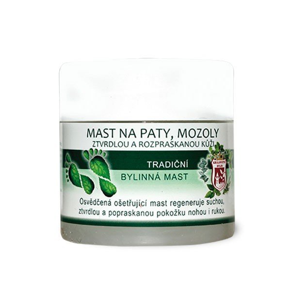 Špeciálne zostavená bylinná masť obsahuje vysoký podiel glycerínu a prírodných olejov, ktoré hlboko hydratujú a regenerujú ztvrdnutú a popraskanú pokožku. Vďaka tomu pomáha zmäkčiť zrohovatené miesta, ako sú päty, prsty alebo lakte, a podporuje ich rýchlu obnovu. Tradičné zloženie tejto masti je zárukou účinnej starostlivosti, ktorá je šetrná k vašej pokožke a zároveň zaručuje maximálne pohodlie pri používaní.
