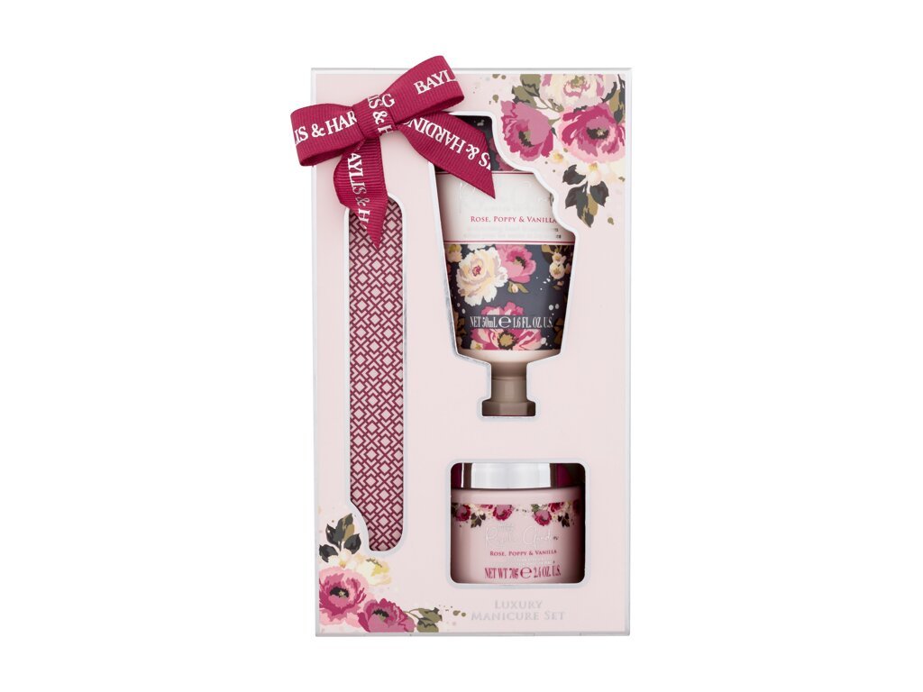 Baylis & Harding Royale Garden krém na ruce Royale Garden Rose, Poppy & Vanilla 50 ml + minerální sůl Royale Garden Rose, Poppy & Vanilla 70 g + pilník na nehty