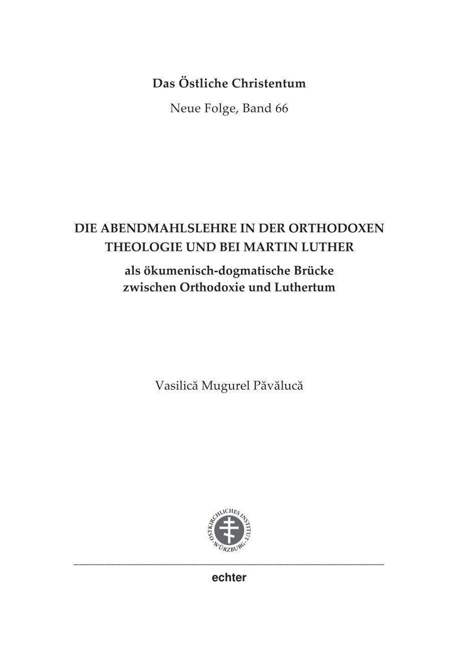 Die Abendmahlslehre in der orthodoxen Theologie und bei Martin Luther (německy)