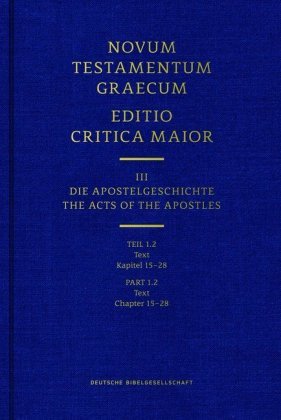 Die Editio Critica Maior dokumentiert die gesamte griechische Textgeschichte des Neuen Testaments im 1. Jahrtausend. Sie ist die Grundlage für die wissenschaftliche Forschung zum Text des Neuen Testaments. - Die vollständige Apostelgeschichte erscheint in folgenden Teilbänden: