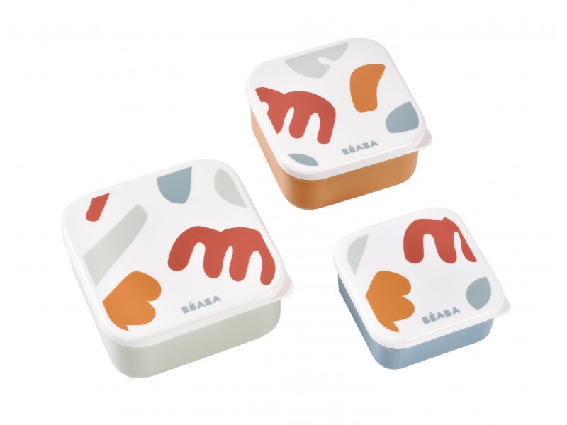 Sada tří svačinových boxů ve třech velikostech je ideální na svačinky do školy i na výlety a procházky. Víčko chrání obsah boxu při přenášení, jeho ergonomické provedení umožňuje snadné otevírání i malými dětskými ručičkami.