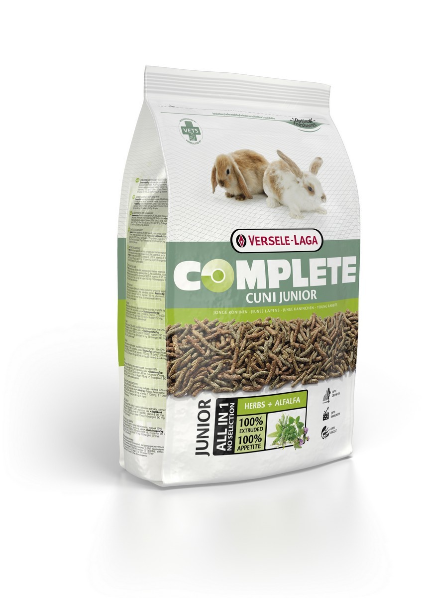 Prvotřídní granulované krmivo pro mladé zakrslé králíčky. Cuni Junior Complete je 100% extrudované jednosložkové krmivo s vysokým obsahem bílkovin, určené pro mladé králíky do 6 až 8 měsíců věku. Podporují trávení a tím správný růst a vyváženou střevní mikroflóru.