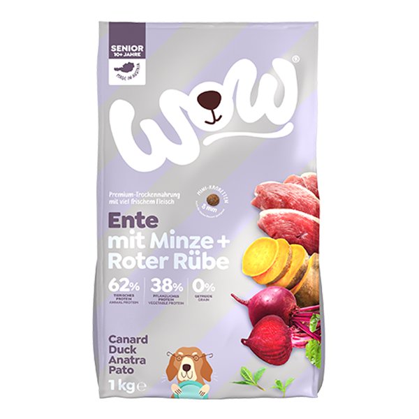 WOW Kačka Senior granulá obsahujú vysoký podiel kvalitného kačacieho mäsa, ktoré je bohaté na bielkoviny pre udržanie svalovej hmoty. Pridaná zelenina ako špenát a brusnice podporujú zdravie močových ciest, zatiaľ čo slávka zelenavá prispieva k udržaniu pohyblivých kĺbov. Vďaka absencii obilnín, lepku, farbív a umelých dochucovadiel je toto krmivo vhodné aj pre psy s citlivým trávením.