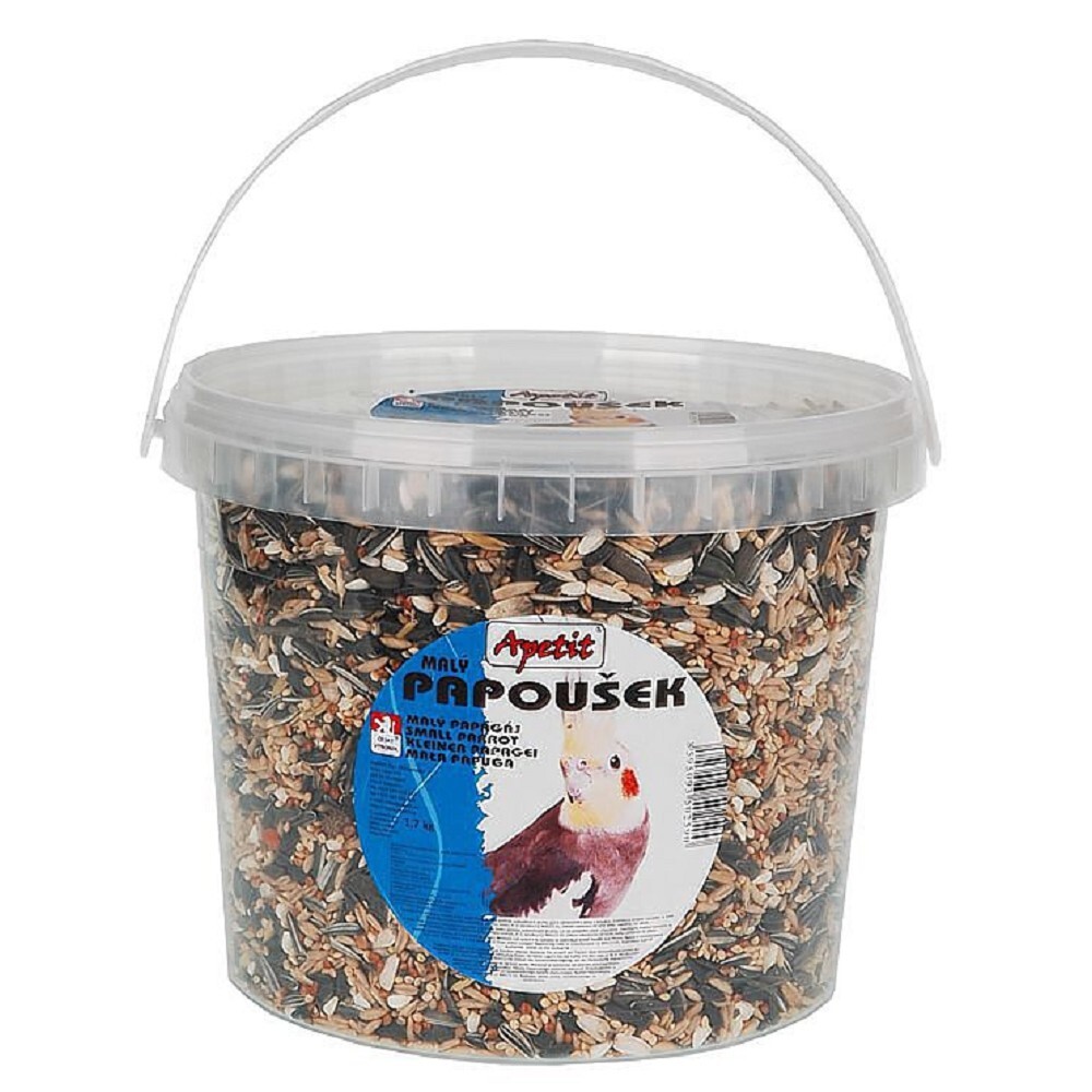 Kompletní krmná směs po malé a střední papoušky.Složení: slunečnice bílá, slunečnice žíhaná velkozrná, slunečnice žíhaná, proso žluté, červené, cardi, oves nahý, slunečnice černá.Dostupné v balení: 3l/1700 g (kbelík), 6 x 800 g (sáček), 25 kgBalení: 1,7 kg prečítať celé