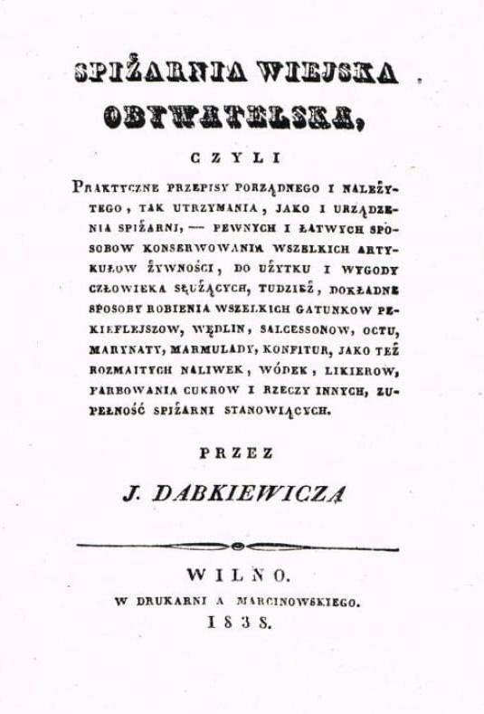 Reprint oryginału z 1883 roku. "Praktyczne przepisy porządnego i należytego, tak utrzymania, jako i urządzenia spiżarni - pewnych i łatwych sposobów konserwowania wszelkich artykułów żywnościowych, do użytku i wygody człowieka służących, tudzież, dokładne sposoby robienia wszelkich gatunków...
