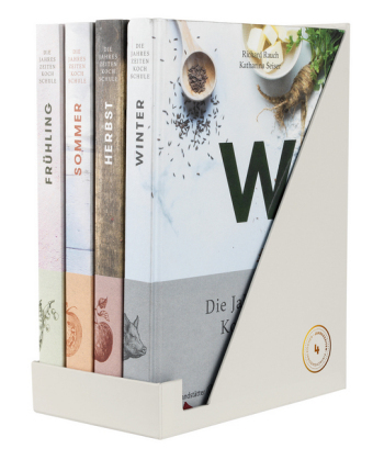 Die erste Jahreszeiten-Kochschule - endlich vollständig! Das muss gefeiert werden. Deshalb gibt es die Rei-he mit allen vier Bänden jetzt zum Jubelpreis im schicken Multifunktions-Schuber, der auch als clevere Buchstütze einsetzbar ist.