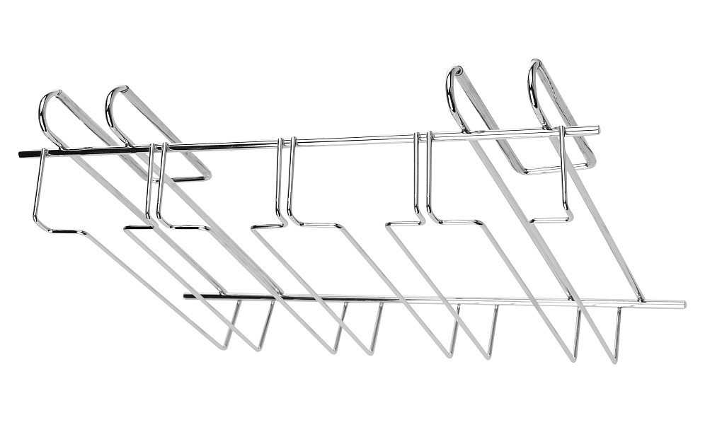 šikovný chromovaný držák na vínové skleničkyumístíte na poličku, barové římsy nebo na spodní stranu barového pultu (viz obrázek 2)sklenice pak lze pohodlně vkládat do držáku, kde jsou umístěny za spodní část a visí dolůskleničky lze ukládat až ve 4 řadách vedle sebev oblasti uchycení držáku jsou...