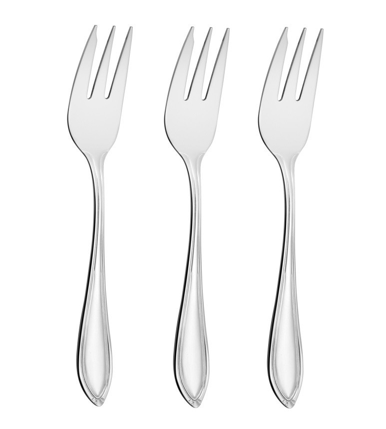 Sada tří kusů dezertních vidliček CS Solingen BAGUETTE zaujme kvalitním zpracováním z nerezové oceli ve vysoké kvalitě 18/10. Dezertní vidličky jsou vhodné na moučníky či předkrmy a to pro každodenní použití. Povrch je lesklý, se souměrným zdobením na rukojeti. Délka každé vidličky je 14 cm.