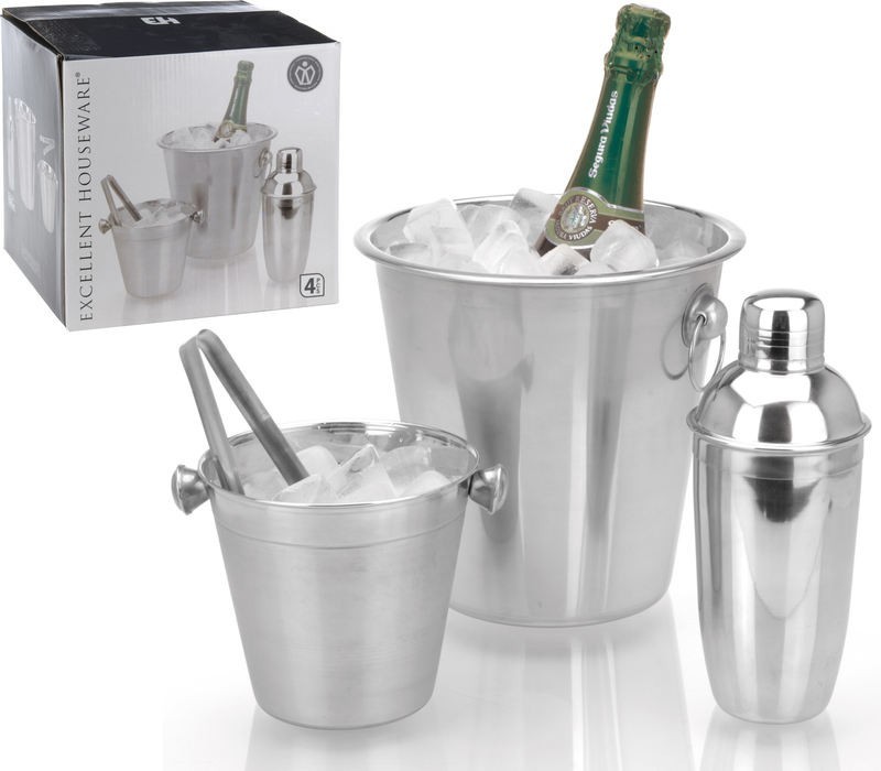 bohatě vybavený barmanský party set 4 ksmateriál: nerezová ocellesklý vnější povrchmatný nerezový vnitřní povrchsada 4 ks obsahuje:kbelík na led 14 x 14 cmchladič na víno/šampaňské 20 x 21 cmbarmanský shaker 500 mlkleště na led 12 cmbarva: stříbrná prečítať celé