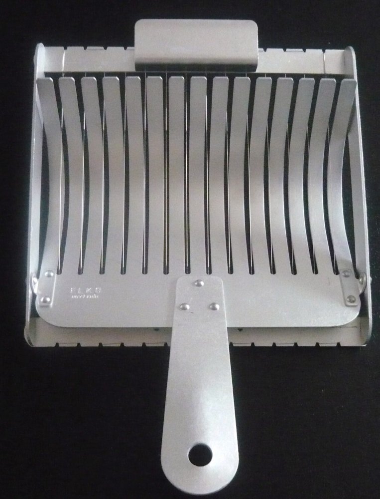 Kráječ na knedlíky je velmi šikovným pomocníkem při krájení knedlíků a jiných potravin. Čtrnáct strun vyrobených z kvalitního nerezového materiálu zajišťuje snadné a rovnoměrné krájení na plátky.
