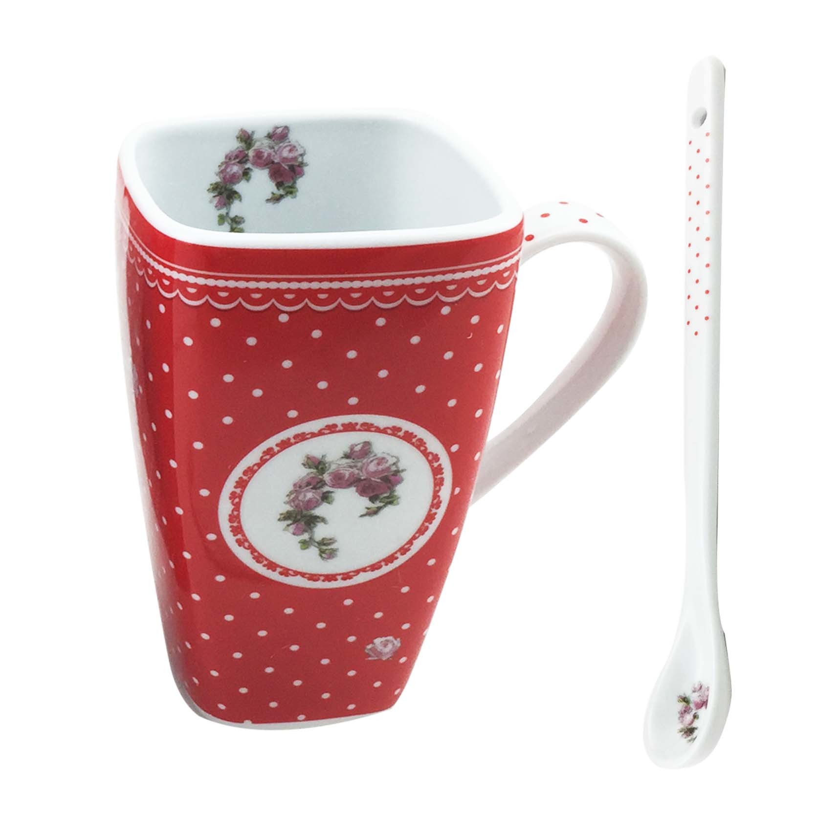 Hrnek porc. 0,6 l se lžičkou ELEGANT ČERVENÁ bílý puntík