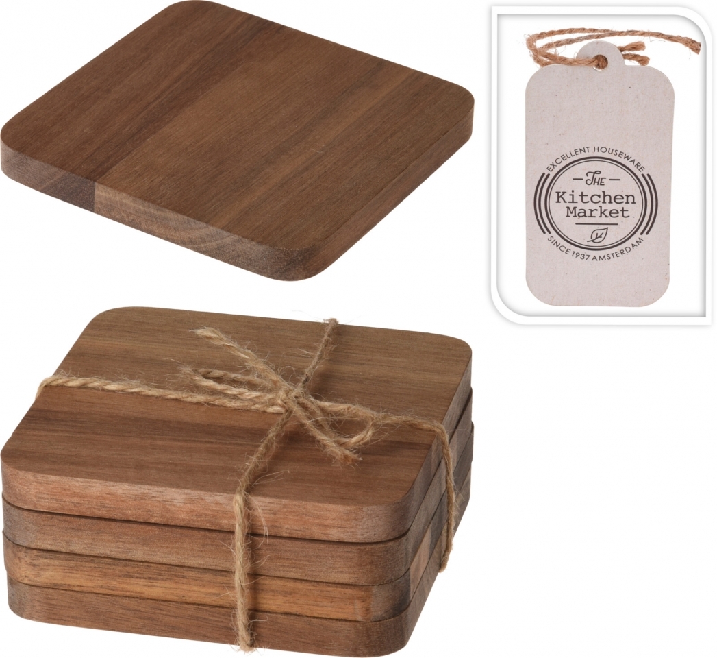 Akátová podložka pod sklenice 10x10 cm, sada 4 ks