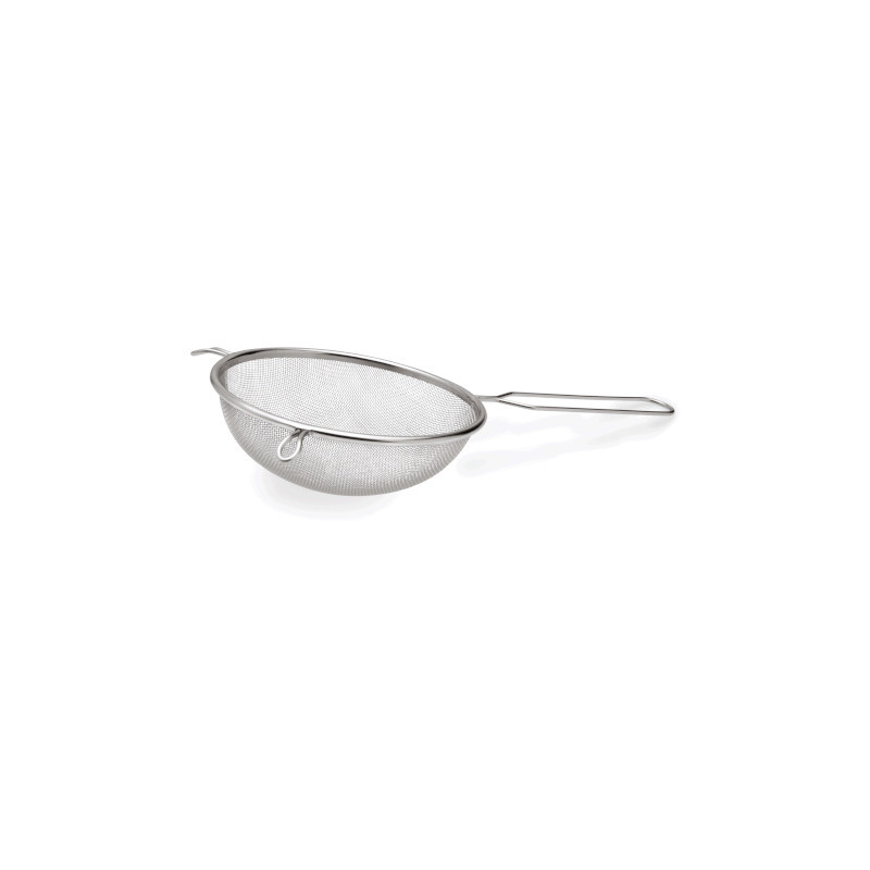 Hrubé síto se hodí pro prosévání sypkých surovin nebo okapávání ingrediencí. Velikost ok je 1,5 mm. Díky praktické drátěné rukojeti ho lze kdekoliv zavěsit a protilehlá držadla slouží jako opěrka na hrnec a pro snadné přenášení.