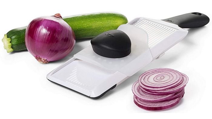 Vytvořte rovnoměrné plátky ovoce nebo zeleniny. Otáčením vyberte jednu ze tří tlouštěk plátků a pomocí ochranného držáku nasuňte jídlo přes čepel z nerezové oceli, což vám ušetří hodně času a úsilí při přípravě jídel. Díky pohodlné protiskluzové rukojeti a noze jej můžete posadit nad mísu nebo postavit vzpřímeně na prkénko, a když se nepoužívá, držák na potraviny se zacvakne, aby bezpečně skryl čepel.