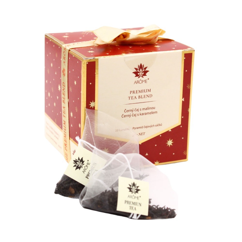 Chutný černý čaj ze Srí Lanky se dvěma různými ovocnými příchutěmi. Pět kusů od každé příchuti jsou zabaleny v pěkné krabičce. Ideální jako dárek pro Vaše milované. Příchuť: Černý čaj s malinou, Složení: Černý čaj 96 %, příchuť maliny 2 %, kousky malin 2 %. Příchuť: Černý čaj s karamelem, Složení: Černý čaj 98 %, karamelová příchuť 2 %