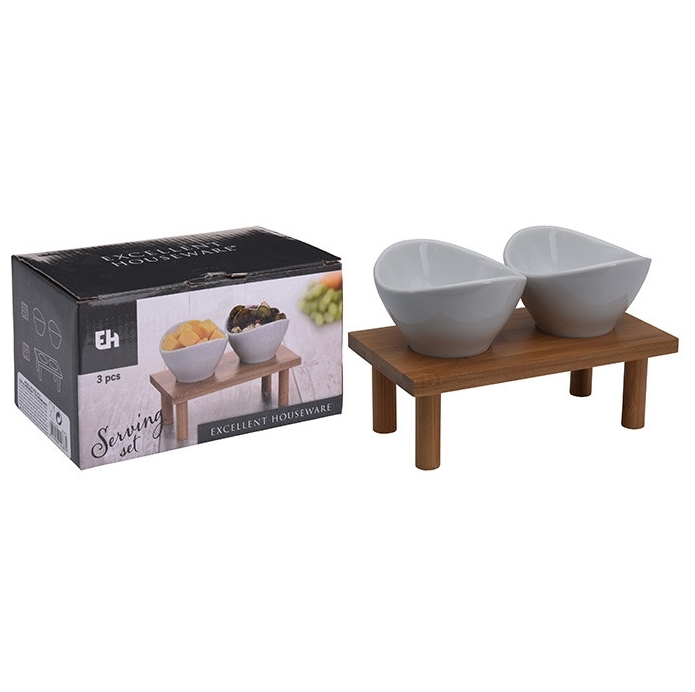 Servírovací sada porcelánových misek na bambusovém stojánku.materiál: porcelán, bambusRozměry:miska10x8x5 cmstojánek 18x10x6 cm prečítať celé