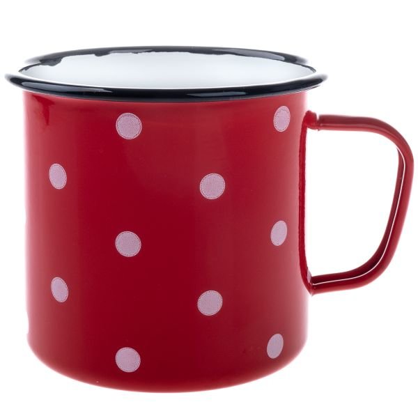 Smaltový hrnek, červený s bílými puntíky, 1000ml, 0/36