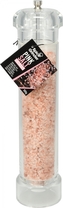 Akrylátový mlýnek pro mletí soli i pepře. Hrubost mletí je nastavitelná pomocí otočného systému na spodní straně. Mlýnek je vyrobený z lehkého, odolného plastu. Mlecí systém, keramický, tyč hliníková. Součástí mlýnku je růžová sůl.