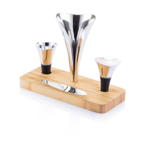 Každý správný vinař ví, že víno je o prožitku, o pravdě, o životě. O věcech, které z obyčejné chvíle nalévání vína do sklenice, dělají neobyčejný obřad, který dělá duši dobře. Sada Airo Lux poskytuje ten nejlepší servis pro správné otevření, nalévání a uzávěr.Set obsahuje: dvoufázovou vývrtku,...