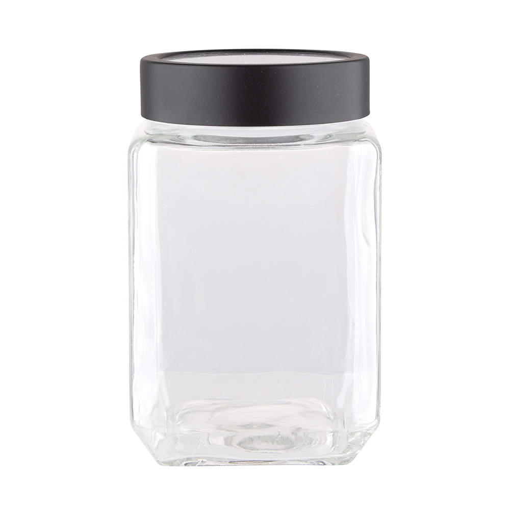 SKLENĚNÁ ČTVERCOVÁ NÁDOBKA S ČERNÝM VÍČKEM 700ML