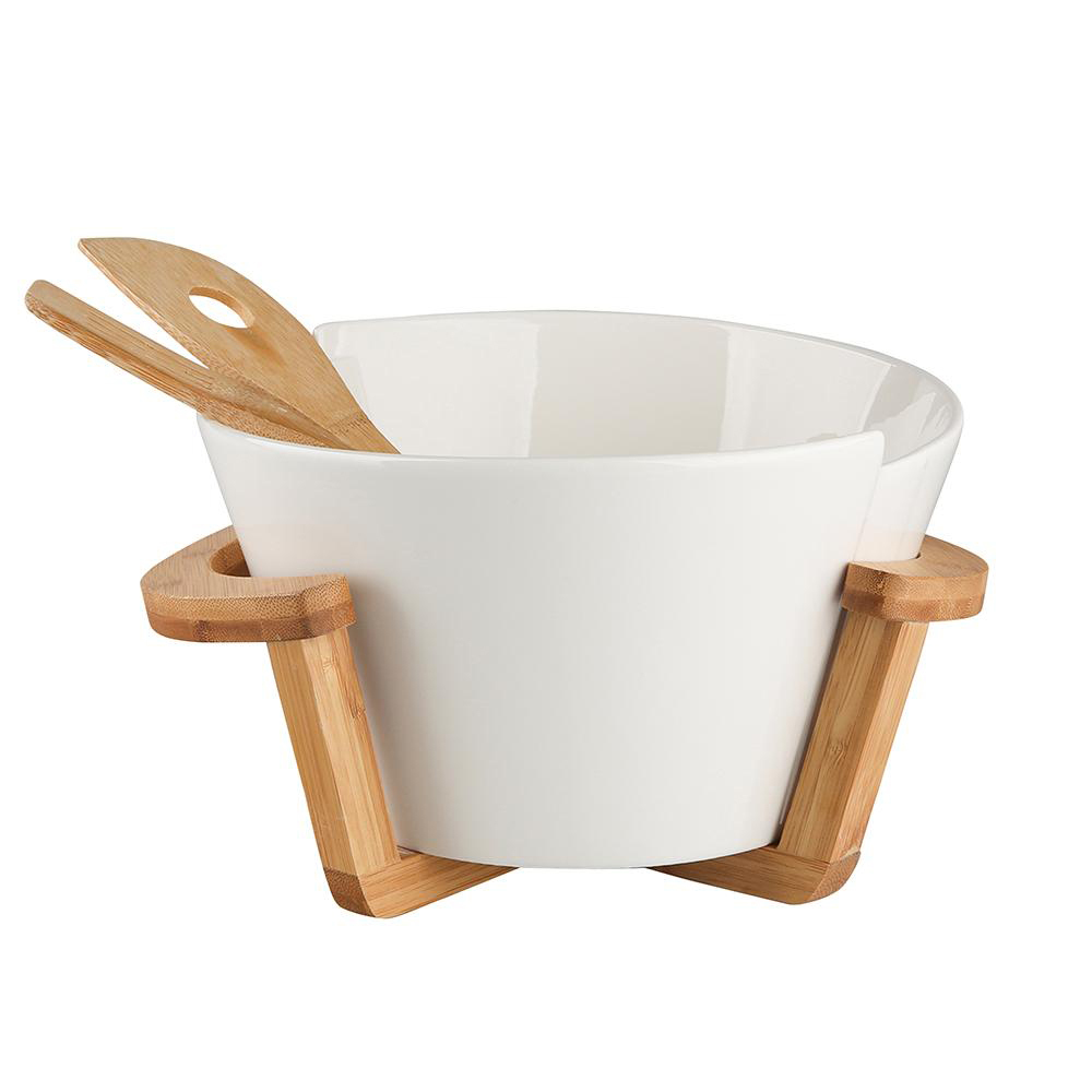 REGULAR SALÁTOVÁ MÍSA OVÁLNÁ 29X25X16CM S BAMBUSOVÝM NÁČINÍM A PODSTAVCEM 29X25X16CM