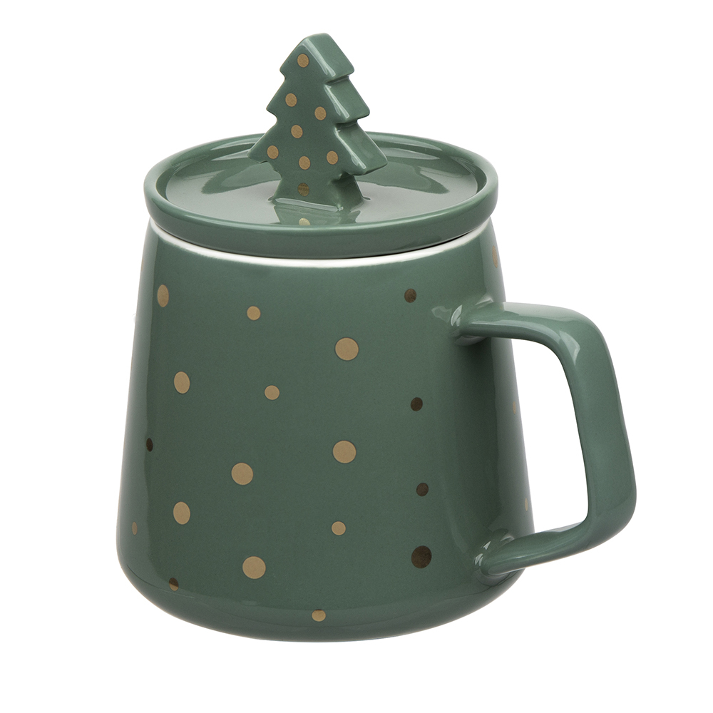 KUBEK STROMEK PORCELÁN NBC 370ML S VÍČKEM ZELENÝM S ZLATÝMI TEČKAMI V COLOR BOXU