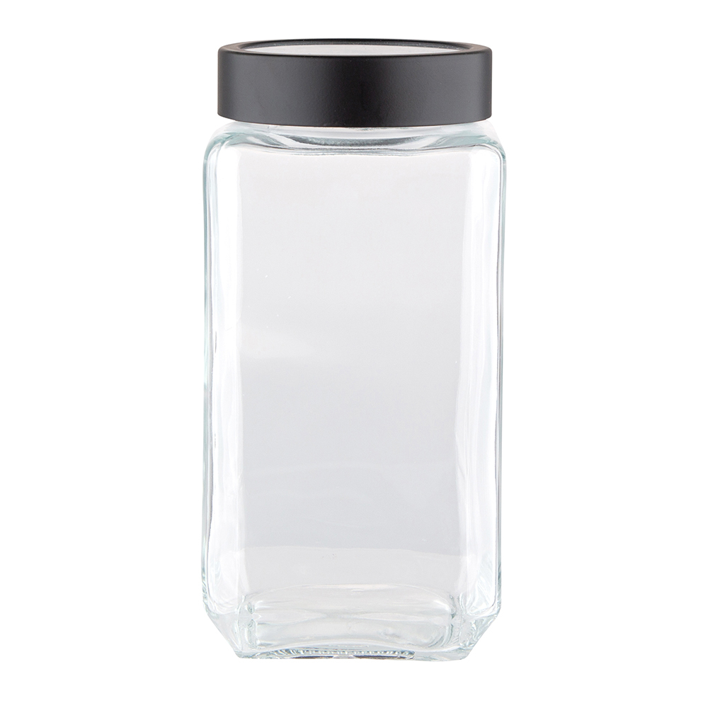 SKLENĚNÁ ČTVERCOVÁ NÁDOBKA S ČERNÝM VÍČKEM 1.0L
