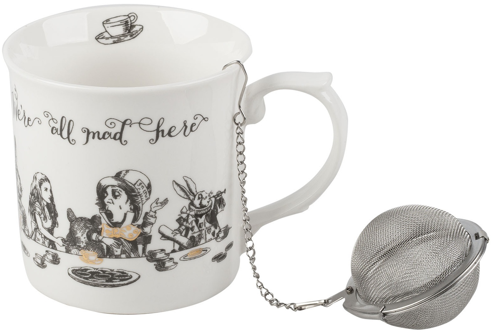 Porcelánový hrnek s čajovým sítkem Alice In Wonderland