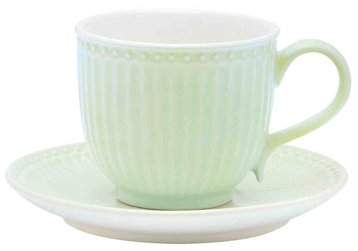 Keramický šálek a podšálek Alice Pale Green je součástí kolekce Alice dánské značky GreenGate prečítať celé