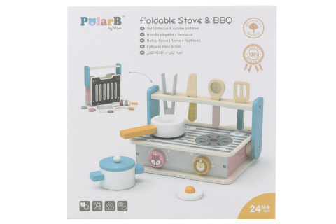Dřevěný sporák a gril o velikosti cca 24,5 x 25 x 6,8 cm. Balení obsahuje také 8 kusů příslušenství. Rozměry balení cca 25,5 x 26 x 8 cm. Věk 24m+ prečítať celé