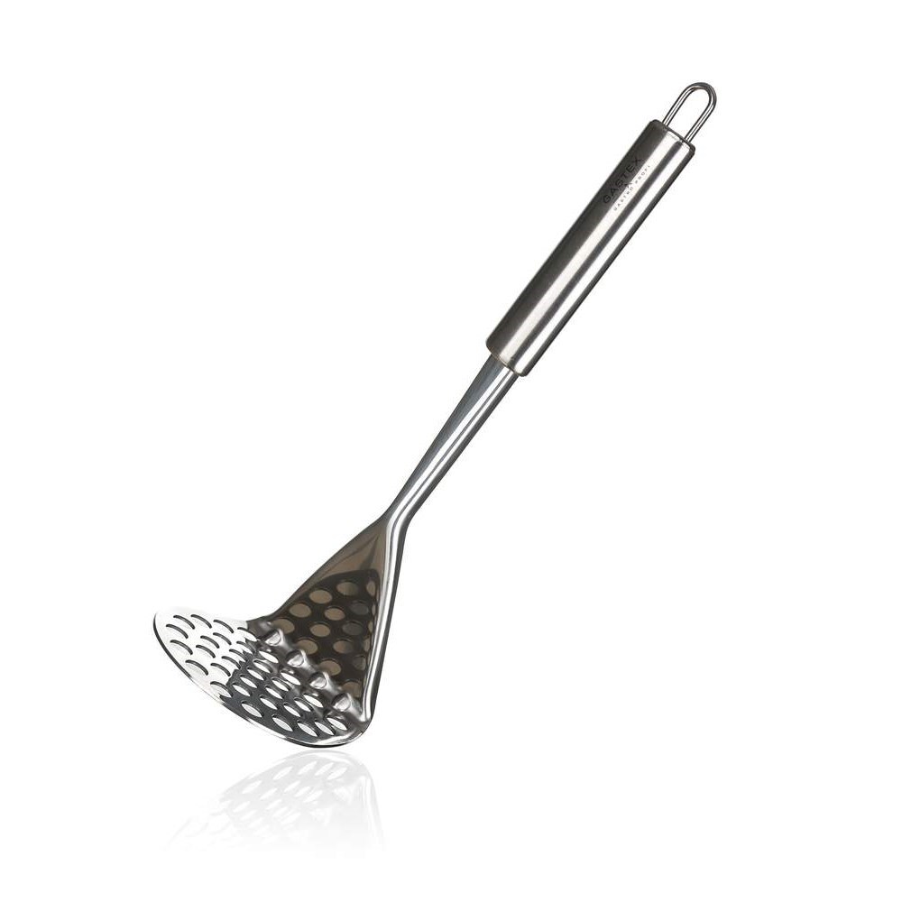 Šťouchadlo na brambory - AKCENT 27 x 8 cm vyrobené z nerezové oceli, je určeno pro profesionální i domácí použití. Šťouchadlo je opatřeno praktickým očkem pro možnost zavěšení, snadno se udržuje a lze mýt v myčce na nádobí. Řada kuchyňského náčiní AKCENT splňuje náročné požadavky profesionálů a je vhodná i pro domácí použití. Jednoduchý funkční design zabezpečuje nadčasovost a dlouhou morální i kvalitativní životnost všech výrobků.