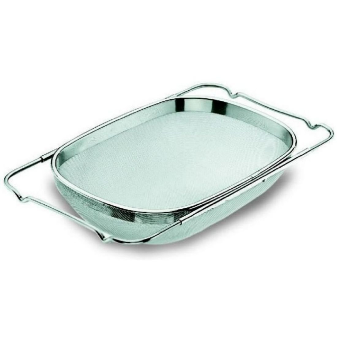 Praktické síto s výsuvnými bočními rukojeťmi je ideální pro oplachování ovoce, zeleniny a bylinek. Potřebnou velikost síta si snadno nastavíte tak, aby vyhovovala velikosti dřezu. Praktický pomocník do každé profesionální i domácí kuchyně.