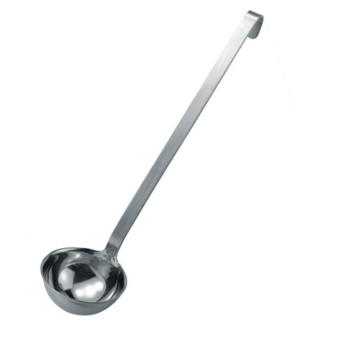 Kvalitní naběračka vyrobená z jednoho kusu oceli, tedy bez různých spár a spojení. Díky závěsnému prohnutí ji lze umístit i na zeď.