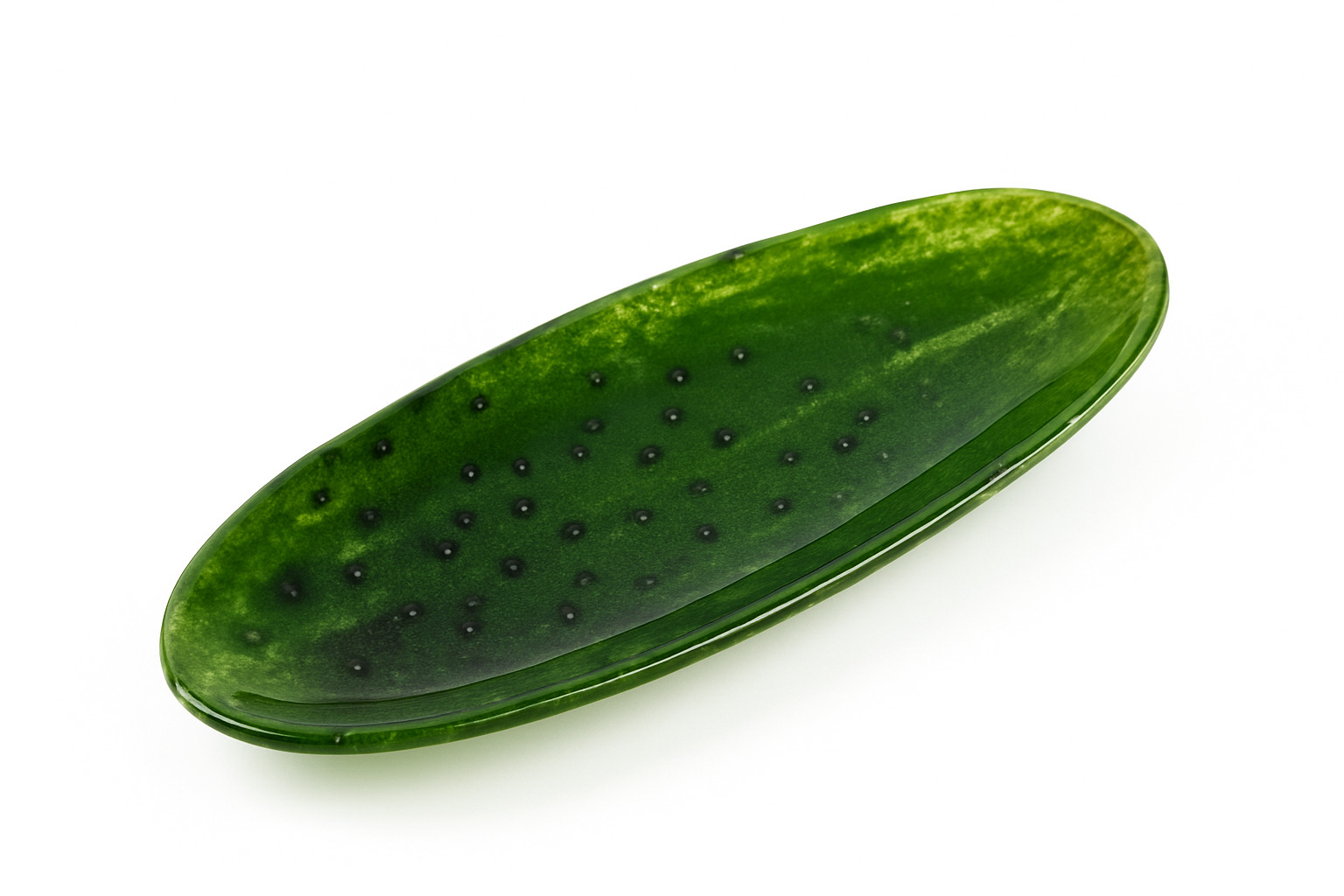 Naczynie ARIA FRESH o wymiarach 9252cm to wąskie, podłużne szklane naczynie zaprojektowane w kształcie ogórka. Wykonane z formowanego szkła o intensywnie zielonej barwie, doskonale imituje naturalny wygląd świeżego ogórka . z delikatnie pofalowanymi krawędziami i charakterystycznym, organicznym...