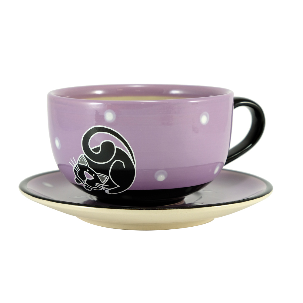 Fialová kuchyňská chňapka a podložka s roztomilou kočkou prečítať celé