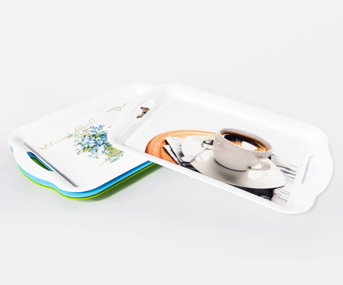 Plastový podnos vhodný na servírování zákusků, chlebíčků nebo kávy, čaje apod. Rozměry 42 x 29 x 3 cm. Barva a dekor dle skladové dostupnosti , většinou bílá bez dekoru. Vyrobeno v EU. Materiál PS, vhodné pro styk s potrtavinami. EAN 6421937080189 prečítať celé