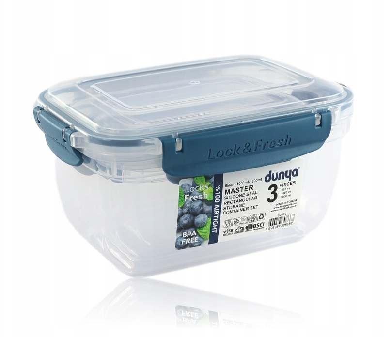 Sada 3ks plastových dóz s hermetickým uzávěrem na 4 klipy. Trvanlivý systém uzavírání spon zaručuje dlouhodobé používání. Silikonové těsnění ve víčku. Objemy boxů 400 / 800 / 1400 ml, rozměry 20 x 14.5 x 9 cm. 100% nepropustné víčko. Boxy jsou vhodné do myčky nádobí, mrazničky a mikrovlnné... prečítať celé