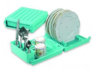 - praktický pevný plastový kempingový odkapávač na nádobí pojme talíře, příbory i hrnky