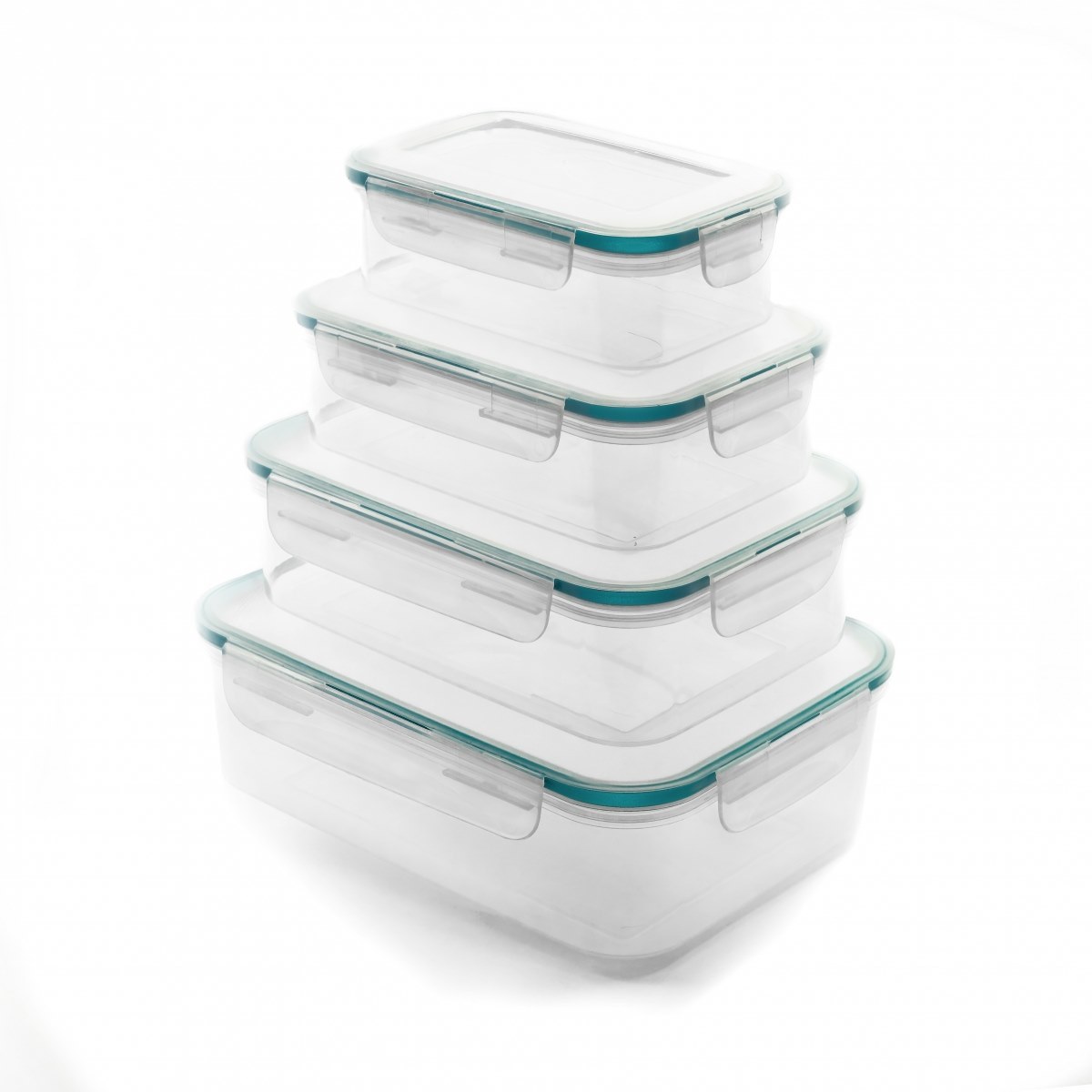 Cena za sadu 4 ks vzduchotěsných dóz s víčkem na klipy. Objemy 0.45 / 0.90 / 1.50 / 2.40 litru. Atest pro styk s potravinami. Vhodná do mikrovlnné trouby, myčky na nádobí a mrazničky. Vyrobeno v EU. EAN 5902443000935 prečítať celé