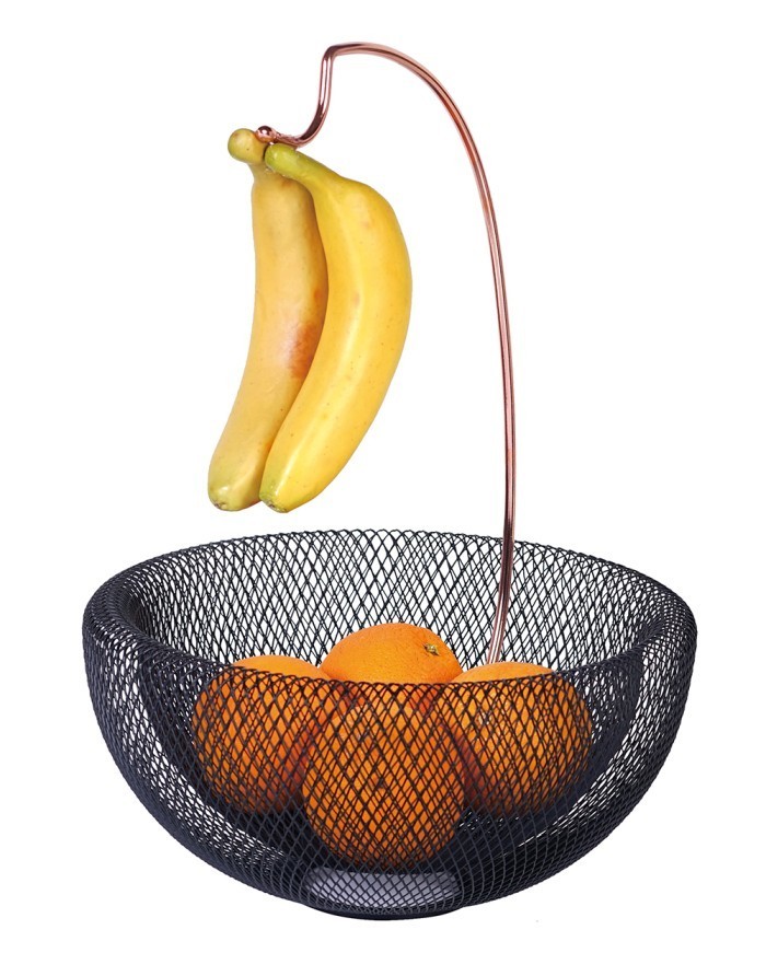ocelový koš na ovoce z kolekce Black Rose Collectionchromovaná úprava povrchu v černé barvědoplněný o držák na zavěšení banánů nebo hroznůatraktivní a praktický doplněk do kuchyně i na Váš stůlrozměry: průměr 29,5 x výška 42 cmznačka: BerlingerHaus prečítať celé