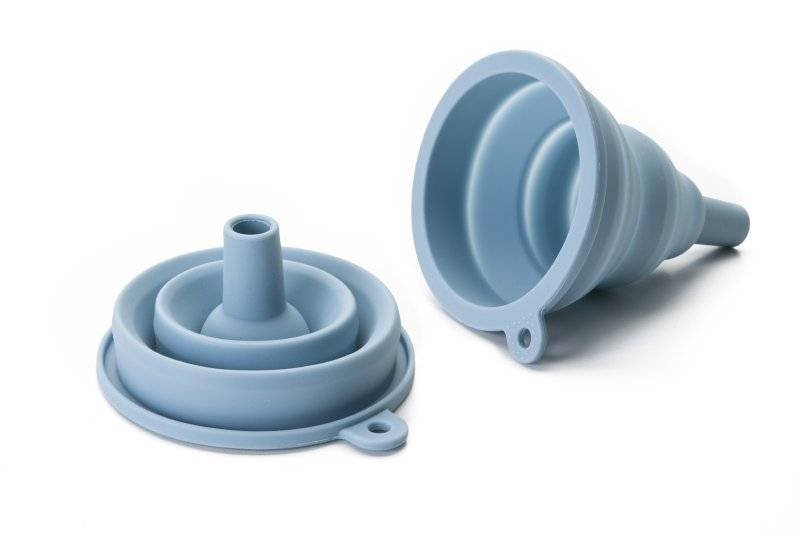 Praktický trychtýř z odolného silikonu modré barvy. prečítať celé