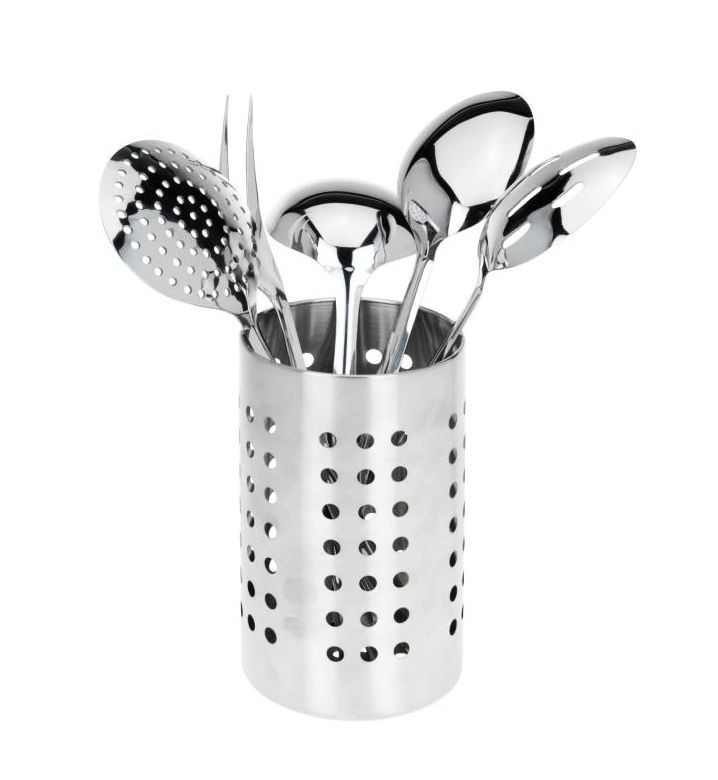 praktická sada kuchyňského vybavení ve stojanunejčastěji používané kuchyňské pomůcky při vaření, máte přehledně v jednom stojanu vždy po rucemateriál kuchyňského náčiní: nerezová ocelsada 6 ks obsahuje:vidlička 32 cmlžíce 33 cmděrované lžíce 33 cmnaběračka 28,5 cmpěnovačka 32 cmdržák na náčiní...
