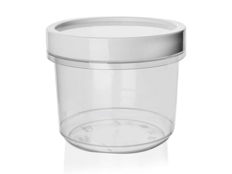Dóza s víčkem na uskladnění potravin. Víčko se silikonovým těsněním zabrání rozlití tekutých potravin. Materiál: plast, silikon. Rozměry: objem 0,94 l, pr. 13 cm, v. 10 cm. Lze mýt v myčce na nádobí, použití v MVT bez víčka, vhodné do chladničky/mrazničky. prečítať celé