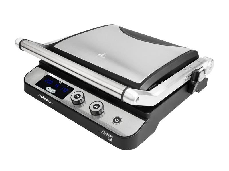 Elektrický gril s příkonem 2000 W a 2 nezávislými termostaty. Rohnson R-2300 disponuje časovačem až na 99 minut, možností nastavení teploty a digitálním LED displejem. Grilovací pláty lze snadno odejmout a je možné je mýt v myčce nádobí.