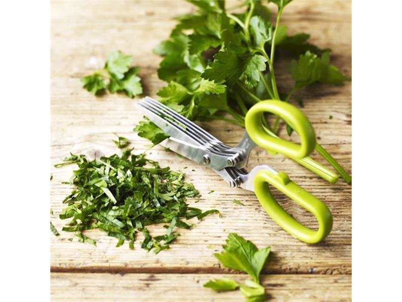Tyto speciální Nůžky na bylinky jsou výborným pomocníkem při pěstování a následném zpracování bylinek. Nůžky mají ergonomicky tvarované držadlo a můžou se pochlubit 5 čepelemi. Ideální na stříhání zelených natí pažitky, petržele, tymiánu, rozmarýnu, jarní cibulky, máty peprné a mnoha dalších. Po každém použití je doporučujeme opláchnout pod tekoucí vodou a vyčistit pomocí přiloženého plastového čistítka.