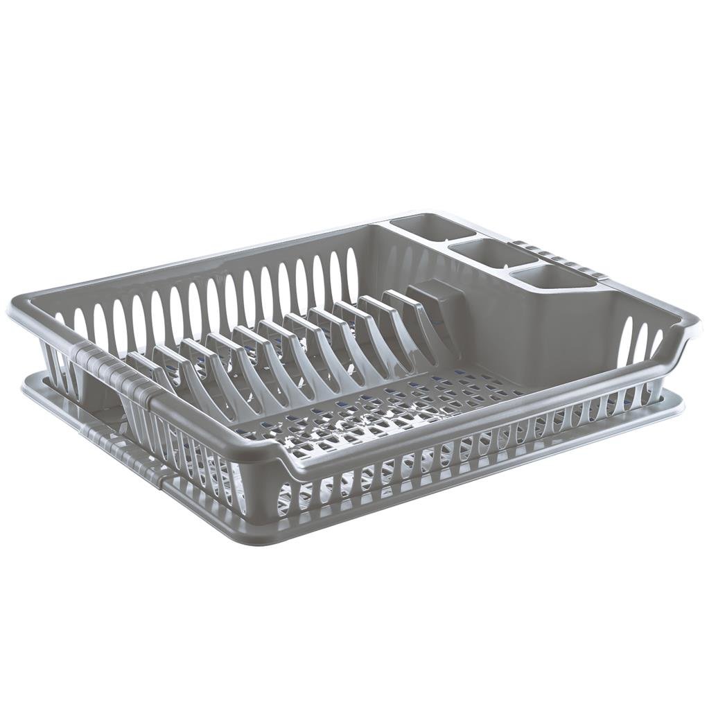 Odkapávač na nádobí s tácem. Členěný - sekce na příbory, talíře a na ostatní nádobí. Materiál: plast. Barevné varianty. Rozměry: 45x37x8,5 cm. prečítať celé