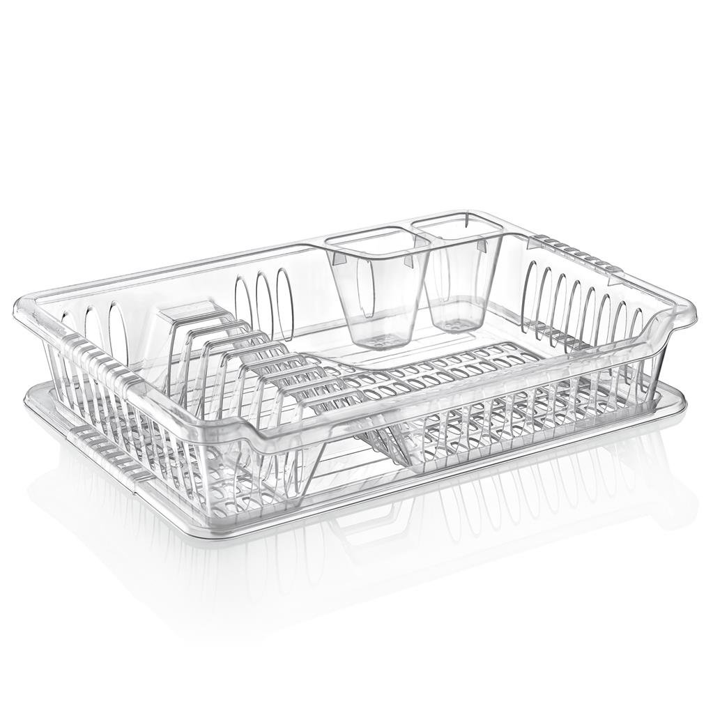 Transparentný dizajn odkvapávača sa skvele hodí do každej kuchyne a umožní vám mať prehľad o odkladanom riade. Vyrobený z kvalitného plastu je ľahký a ľahko sa čistí. Kompaktné rozmery 40 x 29 cm s výškou 8,5 cm zabezpečia, že nezaberie príliš miesta, pritom pojme dostatok riadu pre každodenné používanie.
