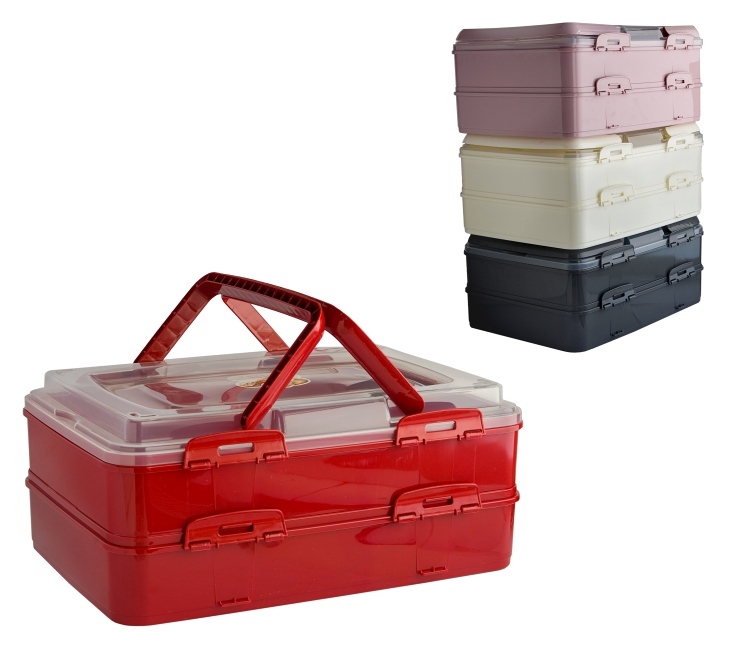 PIKNIK box na potraviny,2 patra/červená,růžová,zelená,šedá/43x26x20cm